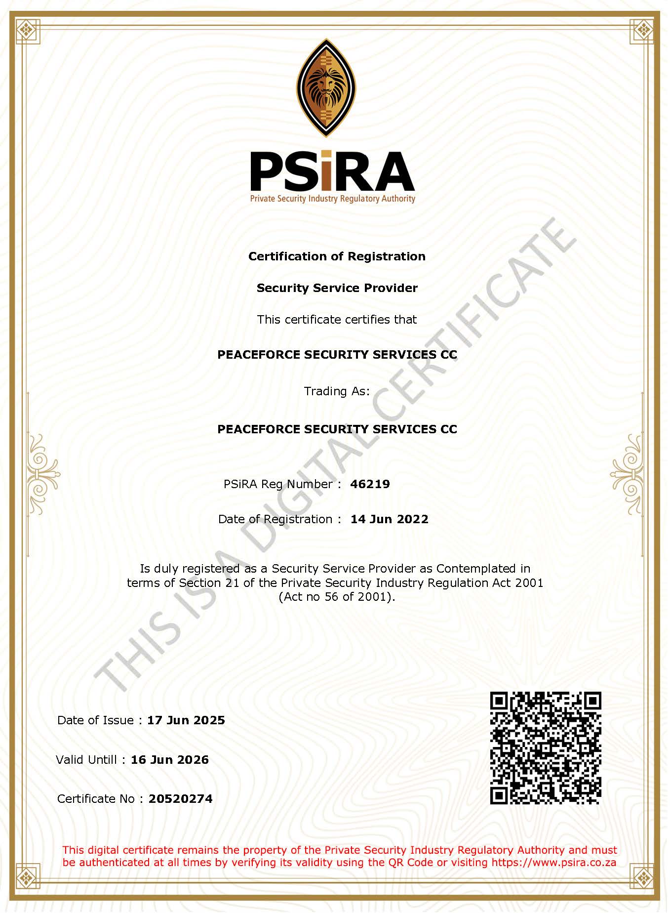 The Peaceforce Security Group brand is recognised by those with a need for professional security services. Protecting the lives, property and companies of the country’s citizens is not just a job to our compliant armed and unarmed security guards, but a sincere commitment. Through our services – ranging from banking security, mining security, commercial and home security – we do everything in our power to go the extra mile to ensure your peace of mind. The Peaceforce Security Group, with branches in Gauteng, the Western Cape and KwaZulu-Natal, is a professional security services provider with more than 30 years’ experience and the first choice for many South Africans – on a consumer level, an industrial level and a commercial level. We offer a variety of services; including – but not limited to – building security services, business security services, construction security services, professional guarding services, personal security, private security, mining security and residential security.